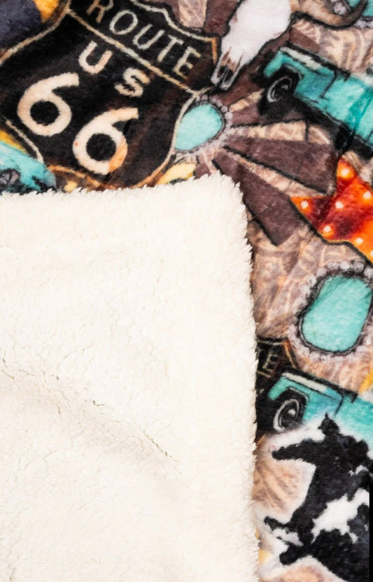 Route 66 Plush Sherpa Blanket