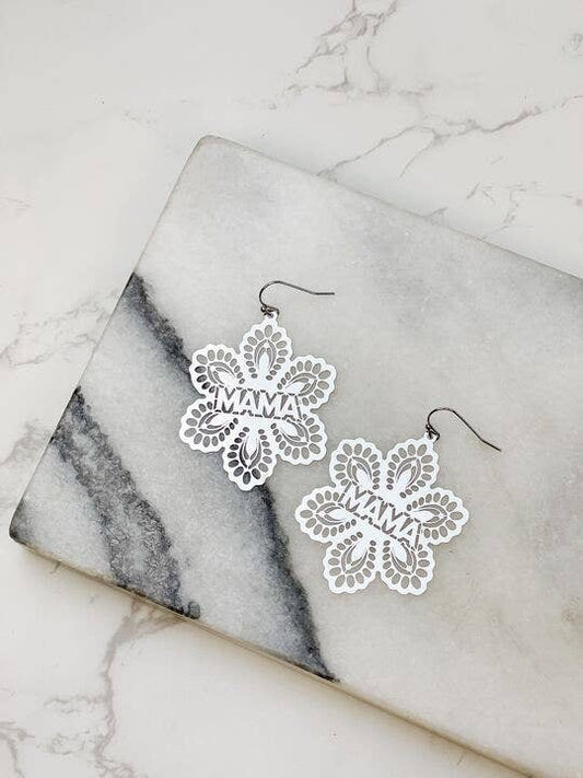 'Mama' Filigree Flower Dangle Earrings