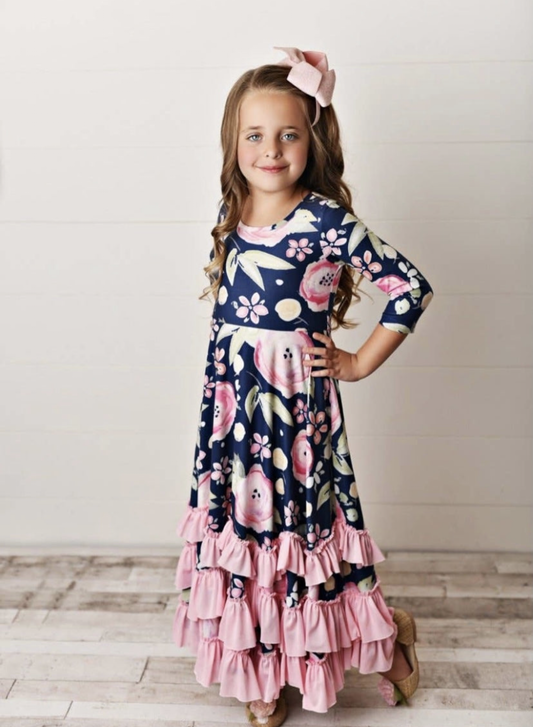 Navy/Pink Floral Twirl Dress